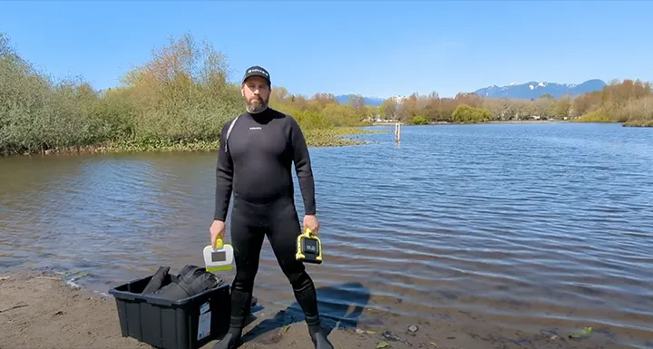 AquaEye Pro – Watch 2 rescuers locate a ‘missing’ swimmer using the handheld sonar